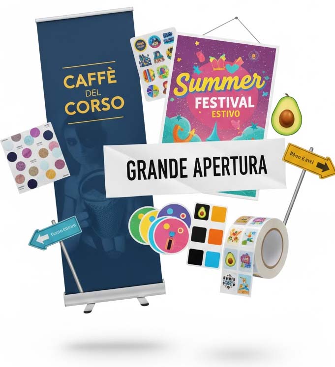 Stampa, allestimento e digitale: scopri l'intera gamma di prodotti e servizi che il nostro laboratorio può offrire. Clicca e inizia a personalizzare!